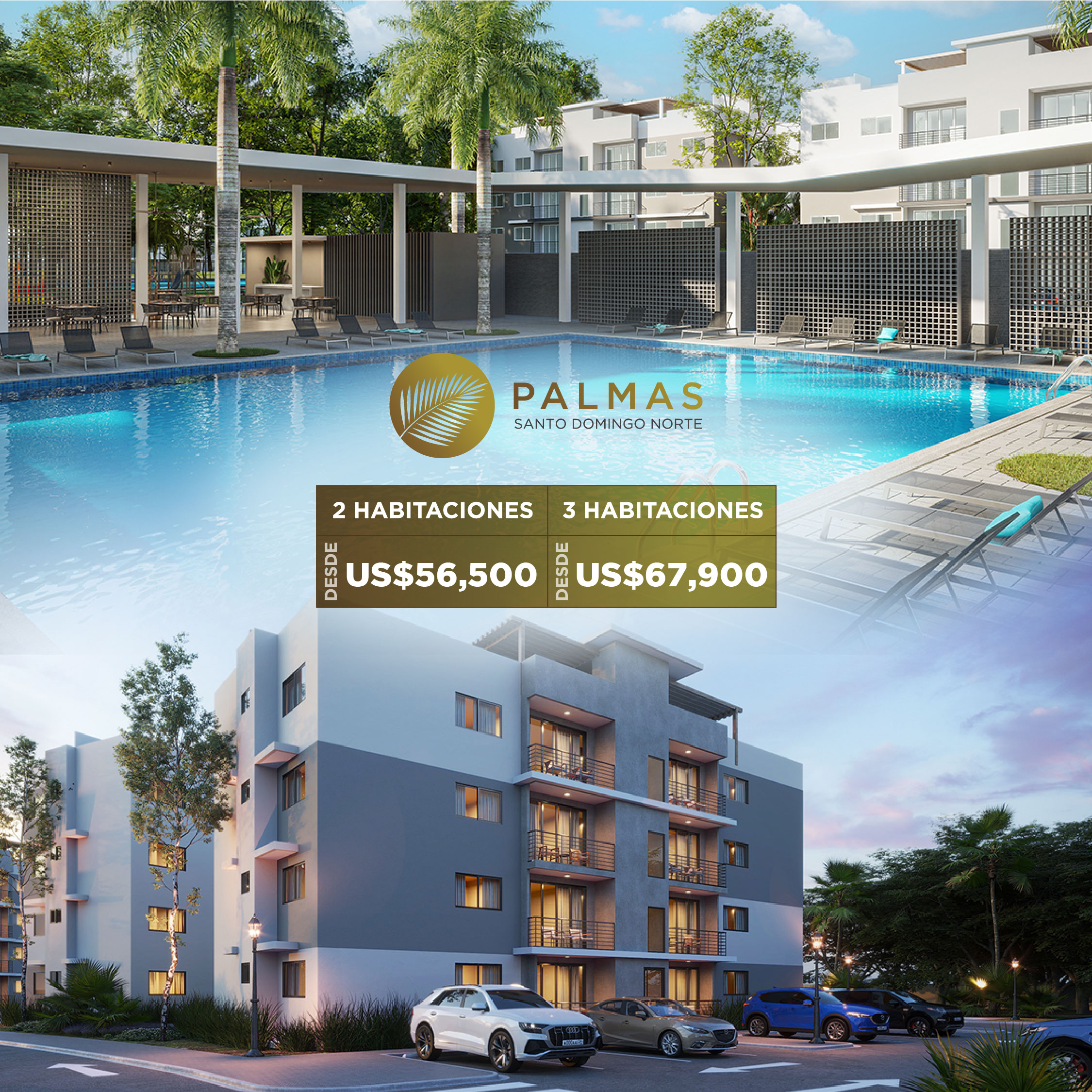 Tanto si buscas una vivienda acogedora o si vas a invertir en un apartamento para rentarlo, el proyecto Palmas es el proyecto ideal, gracias a su ubicación privilegiada, un concepto acogedor y sus múltiples amenidades. Para residentes en el país como para quienes viven y trabajan en el exterior.